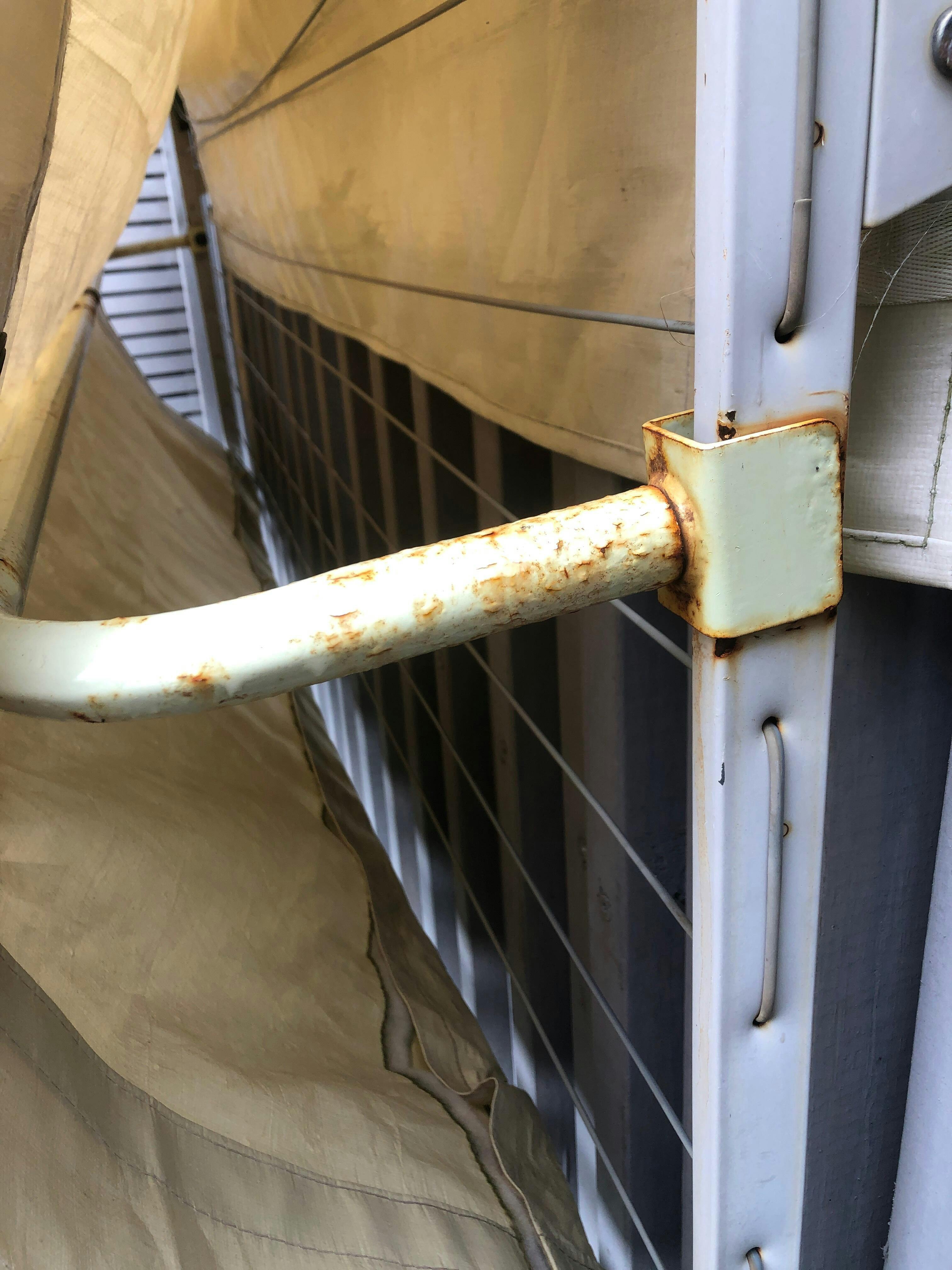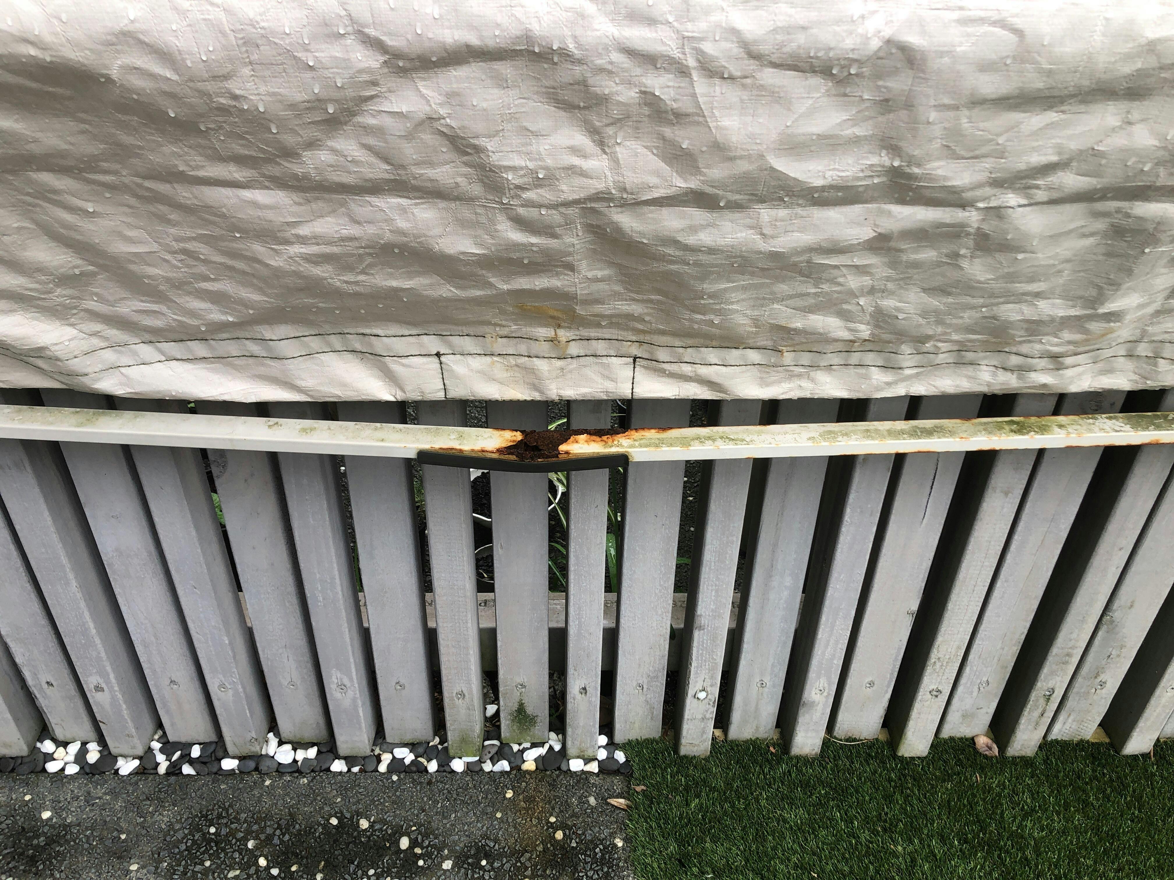 So, I have had mine for a few years and I received new metal parts for free because they had completely rusted. Also, the bottom bar of my clothesline, which it where you wrap the cover around, is also completely rusted. What they do not tell you is that you should absolutely NOT wrap the cover around the metal bar as the rainwater will sit there and eat the metal away. Wrap it around the line that is the closest to the metal bar. For the price, the metal parts are of extremely poor quality. I would definitely not buy again and find a way to use the cover without the metal parts.
